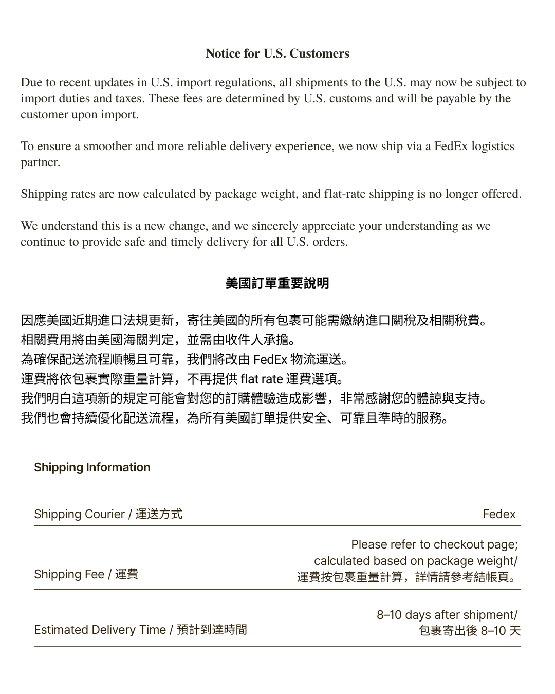*預計到達時間僅供參考,實際依照出貨日與物流配送作業時間